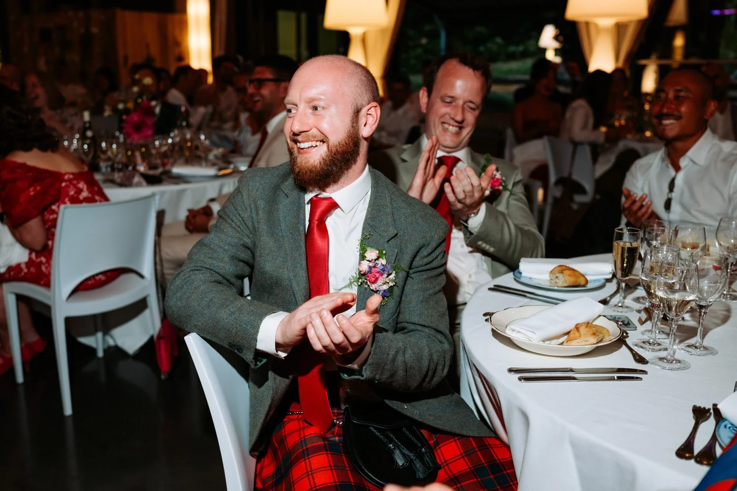 La grande salle de la Villa Emma a été décorée avec soin, avec les indications de Caroline. Des inspirations asiatiques pour faire un clin d’oeil au lieu de vie des mariés, réunis dans une décoration classe et colorée ! Les mariés la découvrent avec beaucoup d’émotion, laissant ensuite place à la fête !